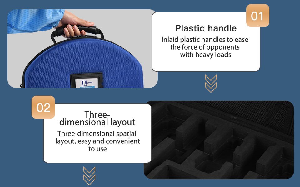 Ele aproveita ao máximo as vantagens do layout 3D, permitindo que a ferramenta de posicionamento fácil seja vista de relance; Ao mesmo tempo, a esponja de alta densidade é usada para abrir o molde com precisão, moldagem primária, design de separação, ferramentas de fixação completa, ferramentas de proteção contra colisões e não é fácil de perder.
