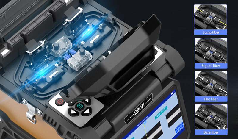 A configuração de 280e é cheia de sinceridade. O dispositivo três-em-um é compatível com uma variedade de tipos de fibras ópticas, suportando jumpers, fibras planas, caudas e fibras nuas, economizando tempo e esforço.