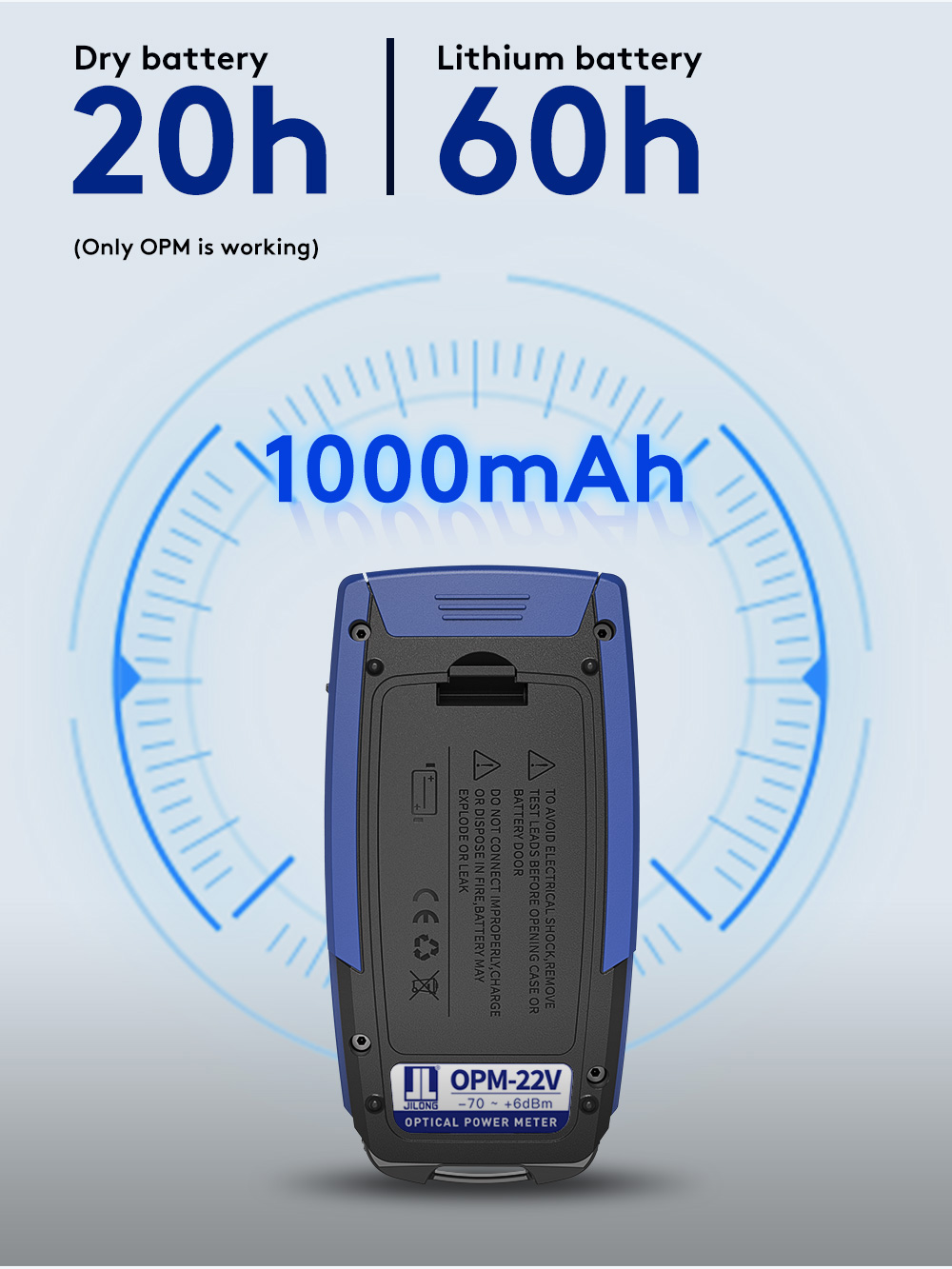 | Rechargeable: 60 hours (only the optical power meter works) | ||